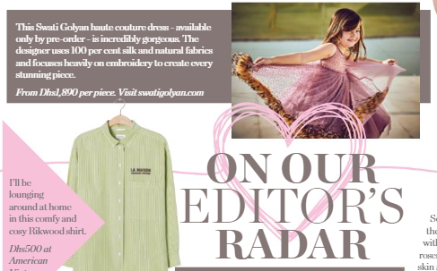 Swati Golyan featured under the section "On our Editor's Radar" of Mother, Baby and Child, UAE in the April Issue.